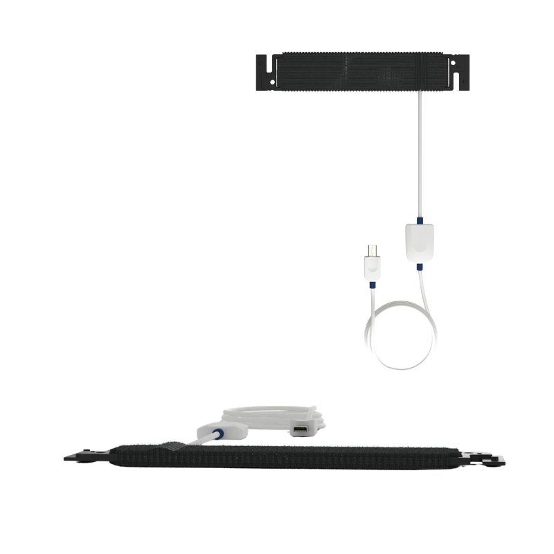 La ceinture élastique peut être ajustée en longueur pour s'adapter à différentes anatomies (homme / femme), emplacements corporels (thorax / abdomen), et circonférences. Les applications de ce capteur sont notamment la surveillance des cycles respiratoires, tau et amplitudes relatives.
