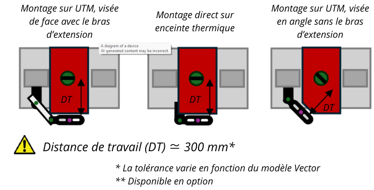 Pour commencer vos essais dans de bonnes conditions, le Vector doit être installé sur le châssis ou dans la chambre d'essai. Ce montage doit être stable et sécurisé. Des exemples de configurations sont présentés ci-dessous
