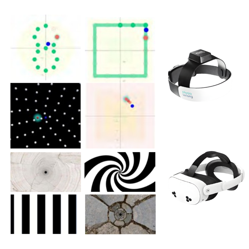 - Outils optocinétiques pour l'intolérance au déplacement visuel — Identifiez la dépendance à la vision, provoquez les symptômes en toute sécurité avec la réalité virtuelle, puis habituez progressivement le patient à retrouver sa confiance dans des environnements réels très animés.